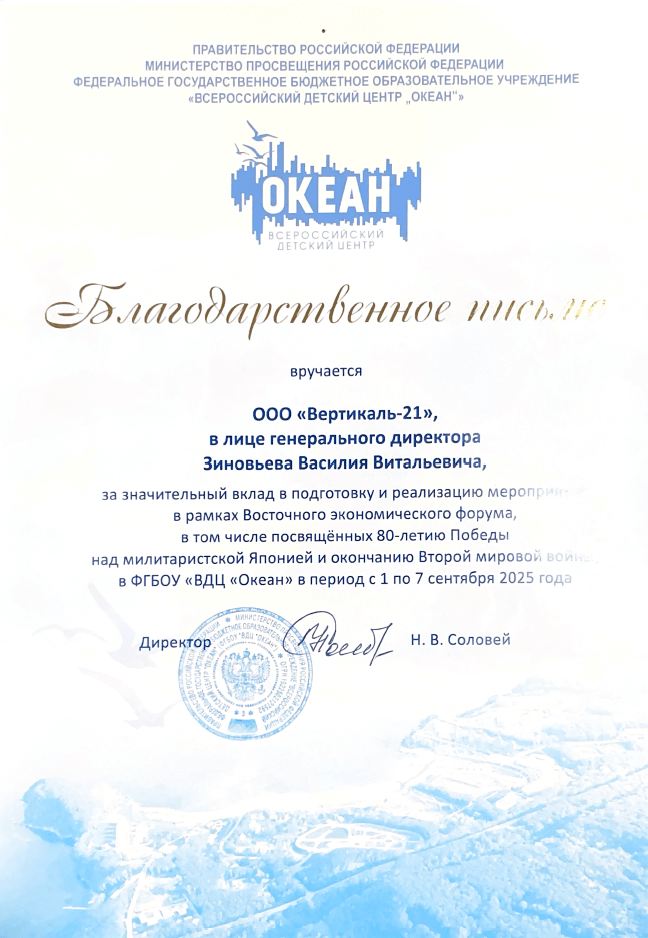В 2025 г. помогли провести ВЭФ на территории ВДЦ "ОКЕАН".
